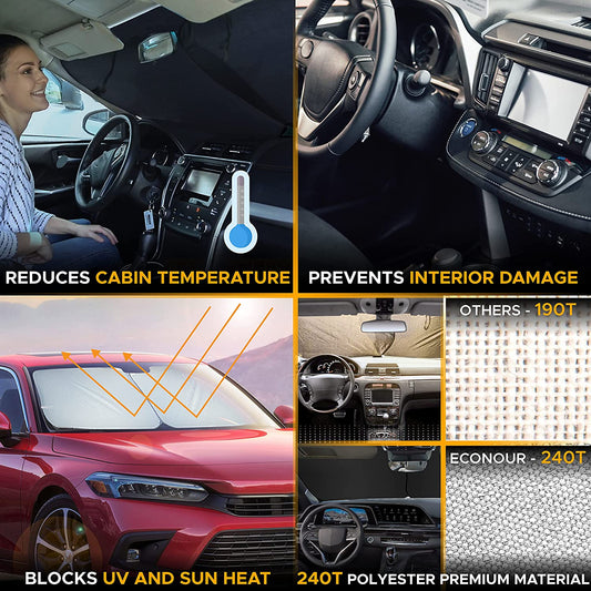 2-Piece Car Windshield Sun Shade | Durable 240T Polyester Sun Shield for Front Window Blocks UV Rays | Foldable Automotive Interior Accessories for Sun Protection | Medium (27.5 x 30.5 inches)