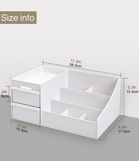 Makeup Desk Organizer with Drawers, Countertop Organizer for Cosmetics, Vanity Holder for Lipstick, Brushes, Lotions, Eyeshadow, Nail Polish and Jewelry (White)