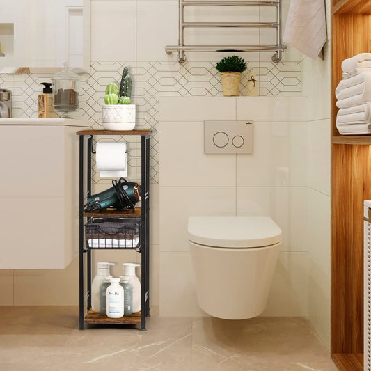 Toilet Paper Cabinet, 4 Tier Small Bathroom Storage Cabinet, Narrow Bathroom Cabinet for Small Spaces and Corner, Toilet Paper Holder with 1 Drawer and 3 Shelves(Rustic Brown)
