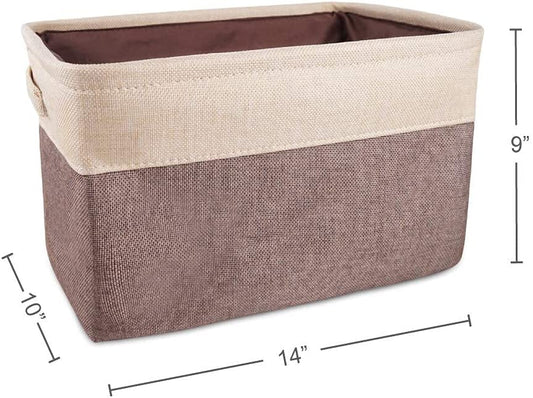 HOSEN Storage Basket Set 3 Pack Large 14 L x 10 W x 9 H - Collapsible Cotton Basket with 2 Handles Organizer Basket Bin Box for Organizing Shelf Nursery Home Closet (Coffee)