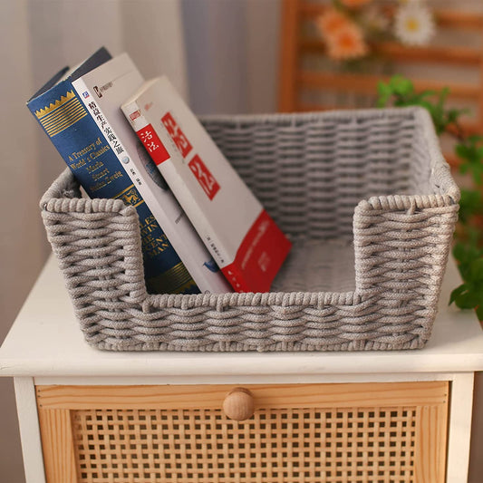 Cotton Rope Storage Basket with Handles Woven Open-Front Baskets Storage Wicker Organizing Baskets for kitchen/Bathroom/Bedroom/Laundry Room/Pantry (Gray)