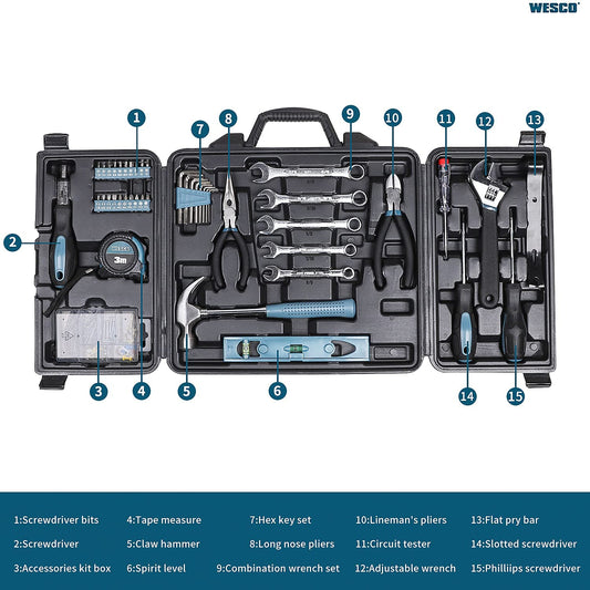 Household Hand Tool Set, WESCO 144 Pieces Home/Car Tool Kit with Portable Storage Case/Box,Electrician Hand Tools Kit for Home/Men/Women