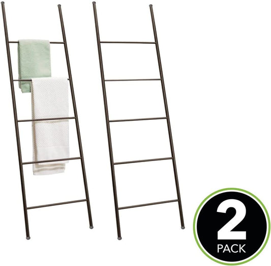 mDesign Metal Free Standing Bath Towel Blanket Ladder Storage Organization, Rack for Bathroom, Bedroom, Laundry Room - 2 Pack - Bronze
