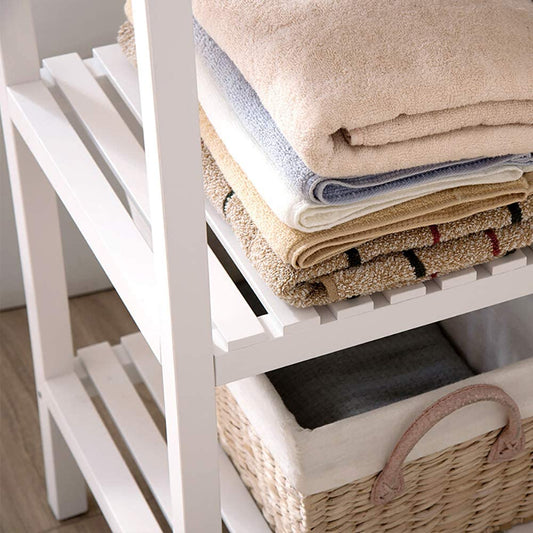 Solid Wood Storage Rack - 3-Tier All Lumber Floor Standing Shelving Unit with Adjustable Feet for Home, Bathroom Towels Shelves Organizer, Easy Assembly and Full Upgraded in 2022, White