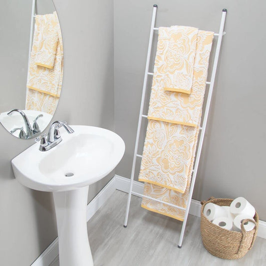 mDesign Metal Free Standing Bath Towel Blanket Ladder Storage Organization, Rack for Bathroom, Bedroom, Laundry Room - White