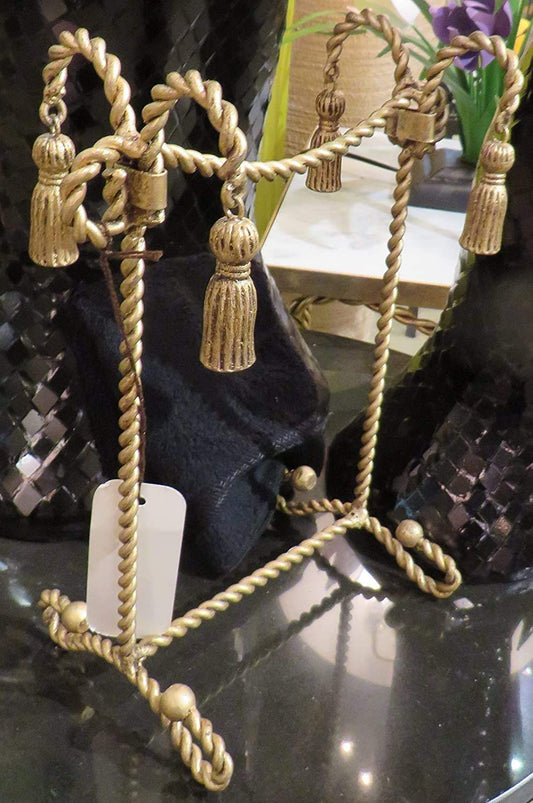 Luxe Gold Iron Hand Towel Rack Vanity Top Ornate Swag Tassel Romantic Old World