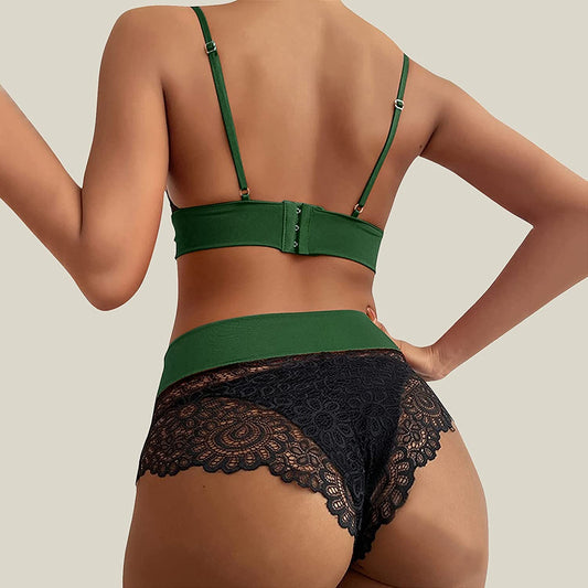 Womens Underwear Sexy Lace Suspenders Bow Bra Shorts Underpants Lingerie Pajamas Set