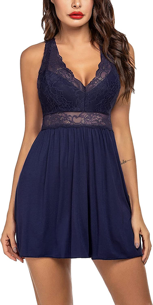 Women Chemise Lingerie Sexy Lace Babydoll V Neck Nightgown Sleepwear