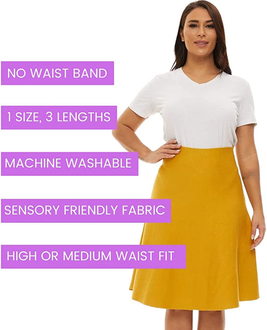 Womens Plus Size Comfortable Stretch Long Skirt-Modest No Waistband Year Round Skirts for Women - Knee Length