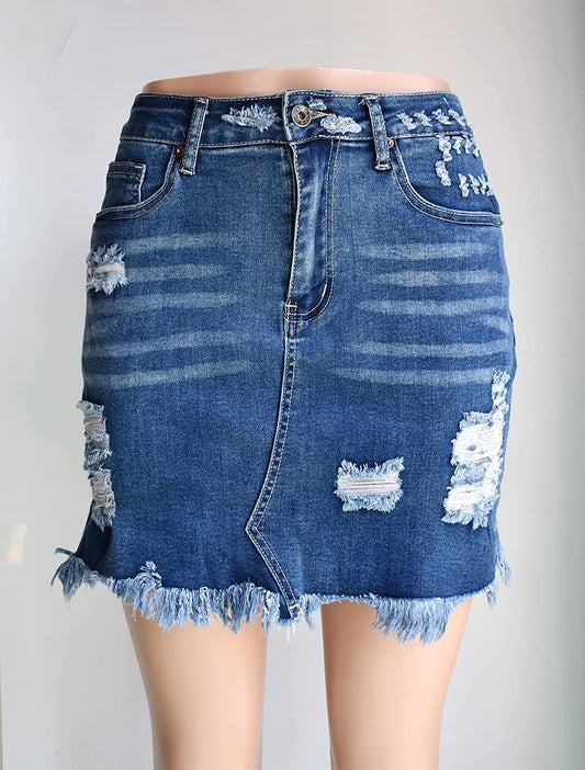 Jean Skirt for Women Stretch Denim Ripped Mini Short Casual A Line Above Knee Length