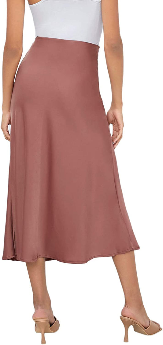 Women's High Waist A Line Skirts Solid Zipper Up Flared Midi Skirt