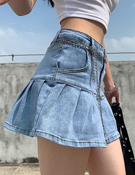 Women's Casual Slim A-line Pleated Ruffle Short Mini Denim Skirts