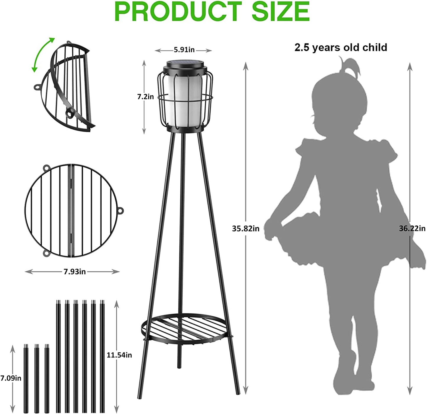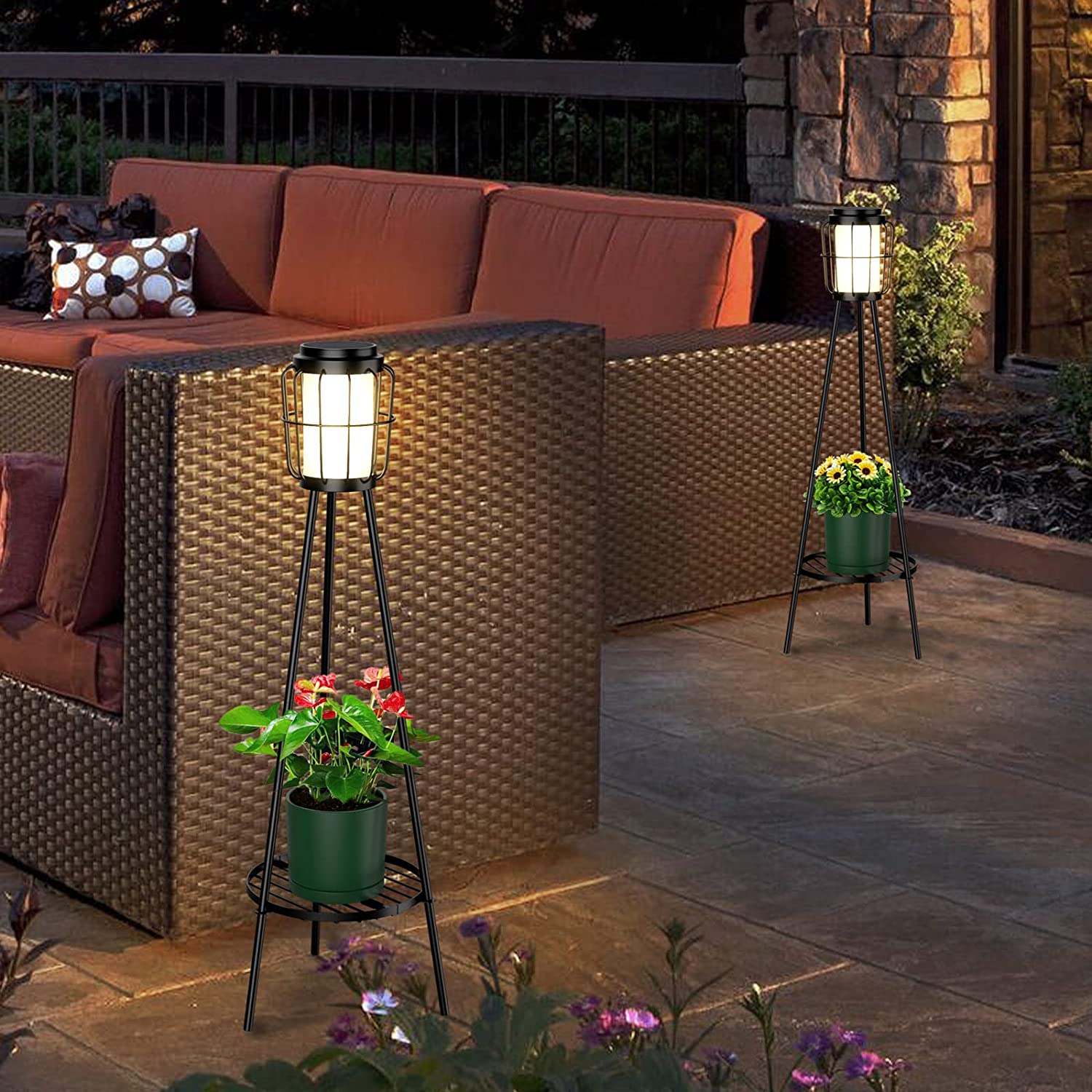 Solar Outdoor Floor Lamp Waterproof (2pcs), Metal Solar Lights Outdoor with Plant Stand, Outdoor Lamp for Deck Patio Yard Garden Decor